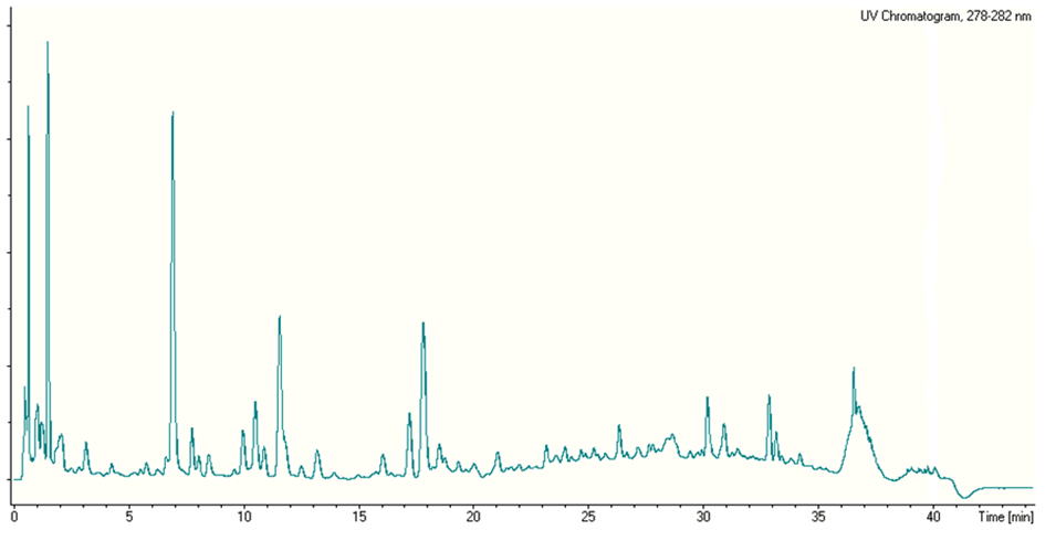 Each plant has a chemical 'fingerprint' - analytical chemistry is a tool with which we can interpret these 'fingerprints'. We may look at a mixture as a whole, or separate out its chemical constituents to look at compounds individually.